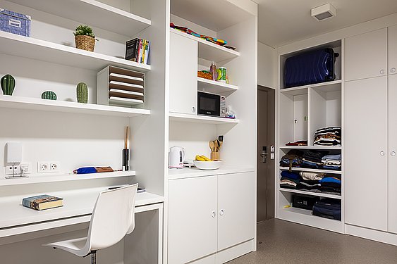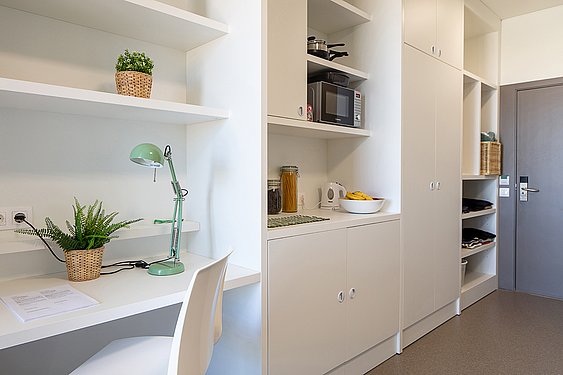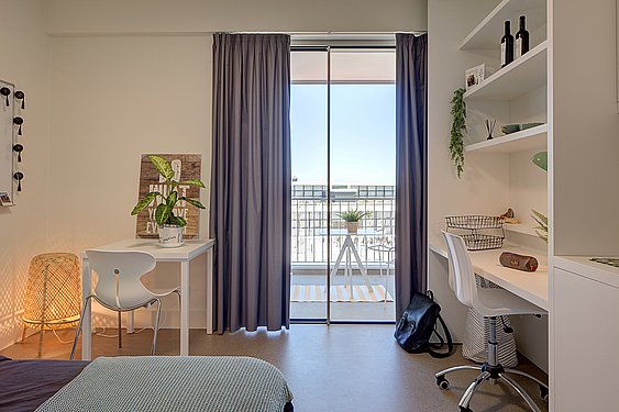 Das MILESTONE Standard Apartment mit Blick Richtung Uni und Balkon