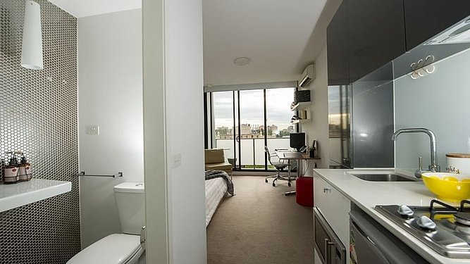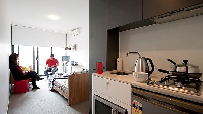 This apartment is designed for those students who are looking for independent living in a supportive community environment. It includes your own bathroom and kitchenette and living/bedroom space. The kitchenette includes gas cooking hotplates, fridge and microwave. There is a balcony which gives you the opportunity to allow fresh air into the apartment or sit outside and study. As Melbourne is known to have four seasons in one day, the reverse cycle air-conditioner and heater will ensure your comfort in your apartment. Apartment Features: A single bed with under bed storage Study desk with chair Lounge chair LCD TV Built in wardrobe with mirrored glass doors Your own private balcony Apartment Size: 17sqm Rent Includes: Res Life Program membership Contents Insurance* - Please click here to view the Product Disclosure Statement and Financial Services Guide Unlimited internet Water Usage Gas Vacuum Rental