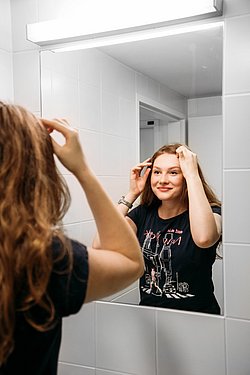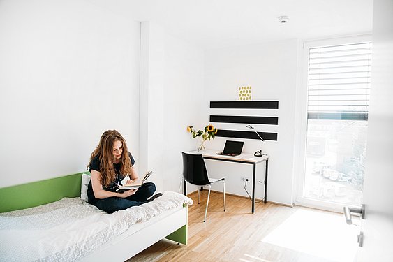Bei einem Einzelzimmer in WG hast du einen eigenen modern möblierten Wohn- und Schlafraum. Die Küche und das Badezimmer mit WC und Dusche teilt ihr euch.